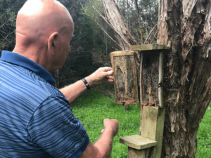 “Research tells us that we are only trapping one per cent of predators. We need to be doing more. We have around 37 rat traps and 7 possum traps all over the property. We also have trail cameras attached to the traps so we can monitor the activity and see what types of predators are here so we know how to target them. With the help of our volunteers here we are able to check the traps daily, re-bait and reset them.